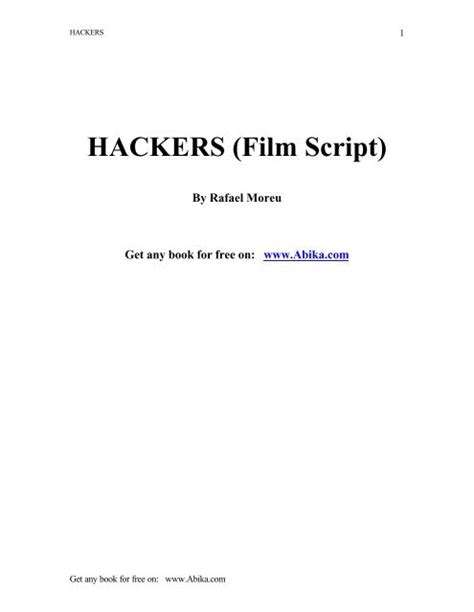 Read Online hackers movie script Kindle Editon By Click Button. hackers movie script it’s easy to recommend a new book category such as Novel, journal, comic, magazin, ect. You see it and you just know that the designer is also an author and understands the challenges involved with having a good book. You can easy klick for detailing book and you can read it online, even you can download it